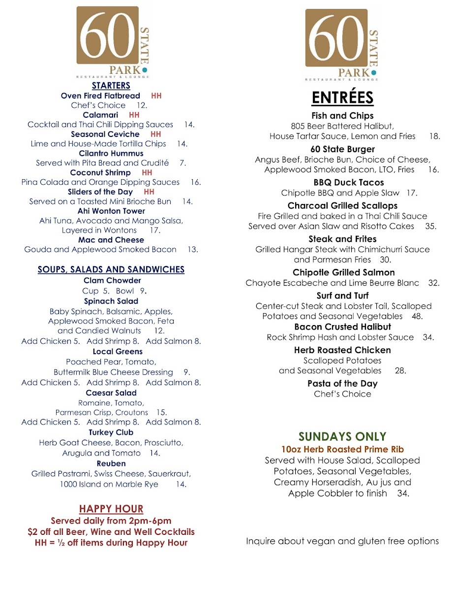 60 State Park Restaurant & Lounge Menu (Update 2025)